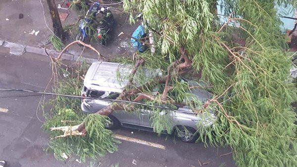 Lúc 17h chiều 29/8, khu vực nội thành Hà Nội mưa lớn kèm gió lốc cực mạnh khiến những người đang lưu thông trên đường được phen hốt hoảng.