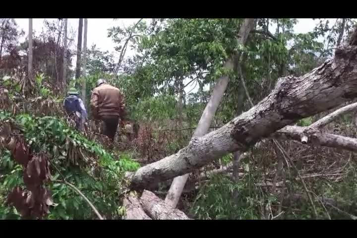 Nhóm phóng viên tiếp cận thực tế và có dịp được “mục sở thị” “đại công trường” khai thác gỗ của “lâm tặc”. Có mặt tại đây, chúng tôi chứng kiến cảnh tượng tan hoang, hàng chục cây gỗ bị “lâm tặc” quật ngã, cành lá còn xanh, gốc rỉ nhựa tươi rói, vết mùn cưa còn mới tinh.