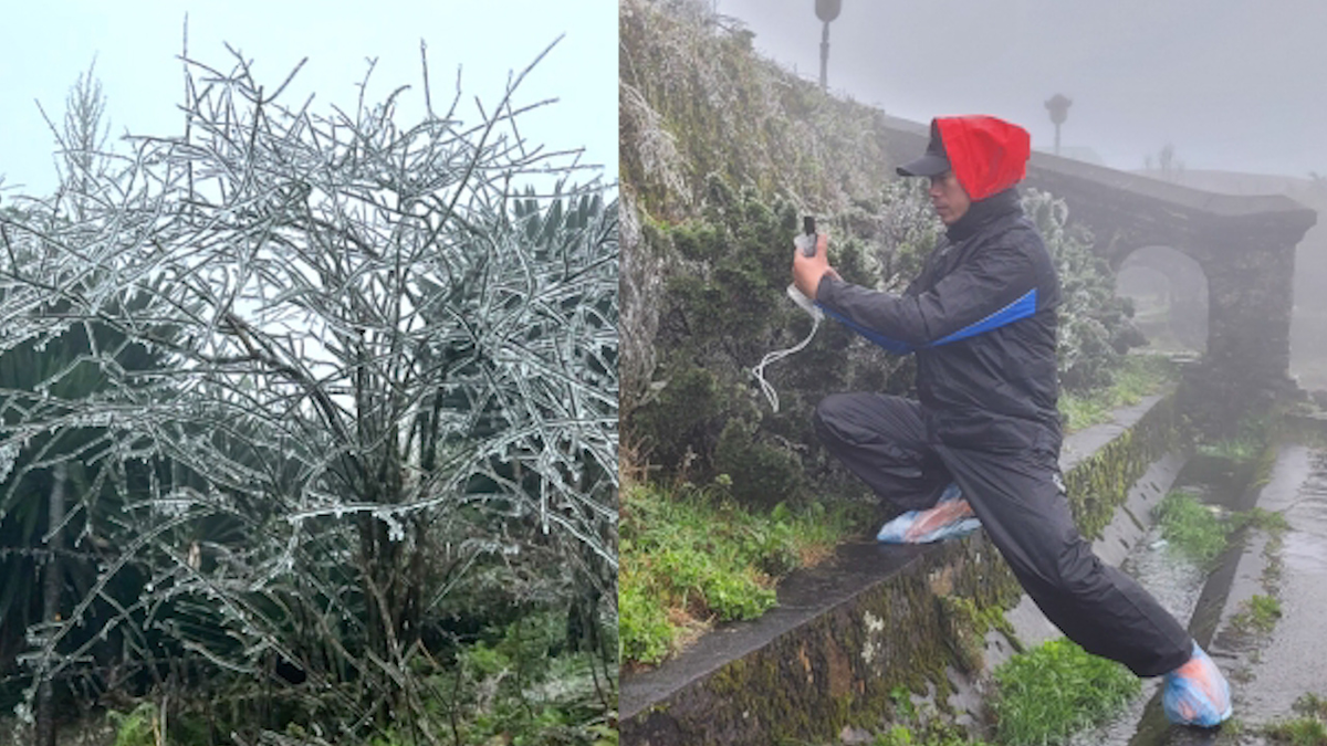 Sáng 20/2, tại đỉnh núi Mẫu Sơn, Lạng Sơn nhiệt độ xuống -1 độ C xuất hiện băng giá, du khách bắt đầu đổ về đây ngắm cảnh, chụp hình.