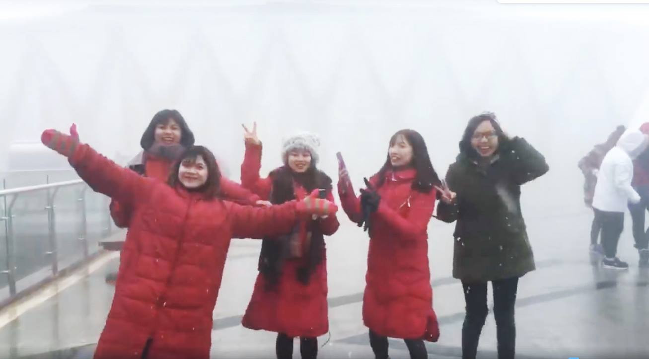 Video: Du khách thích thú vui đùa giữa mưa tuyết trên đỉnh Fansipan (Nguồn: Anh Tuấn)