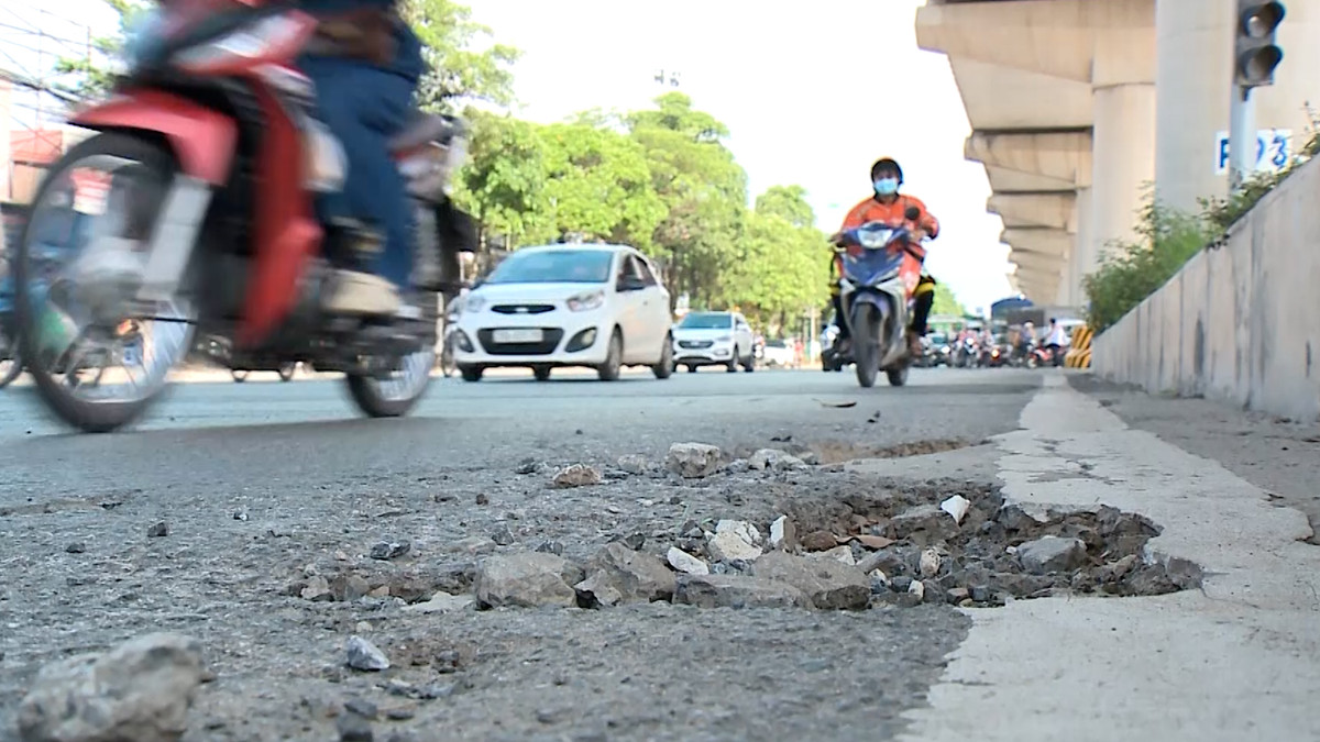 Sau khi tuyến đường sắt đô thị Nhổn - Ga Hà Nội thi công, hơn 10km mặt đường bên dưới trở nên lồi lõm gây nguy hiểm cho người tham gia giao thông.