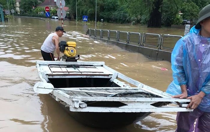 Video: Ngập sâu 1,5 mét, dân Quảng Ninh mang xuồng ra chạy (Nguồn: Linh Be)
