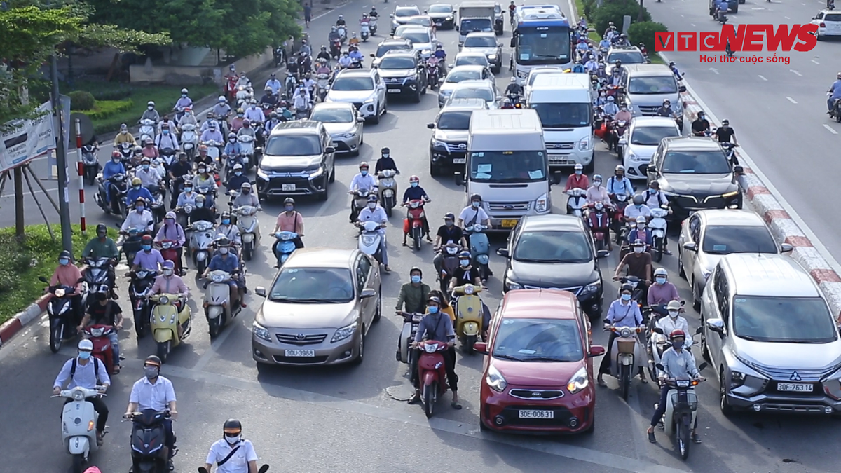 Lượng phương tiện giao thông đổ ra các tuyến đường Trường Chinh, nút giao Ô Chợ Dừa – Hoàng Cầu...vẫn đông vào giờ cao điểm trong những ngày giãn cách xã hội.