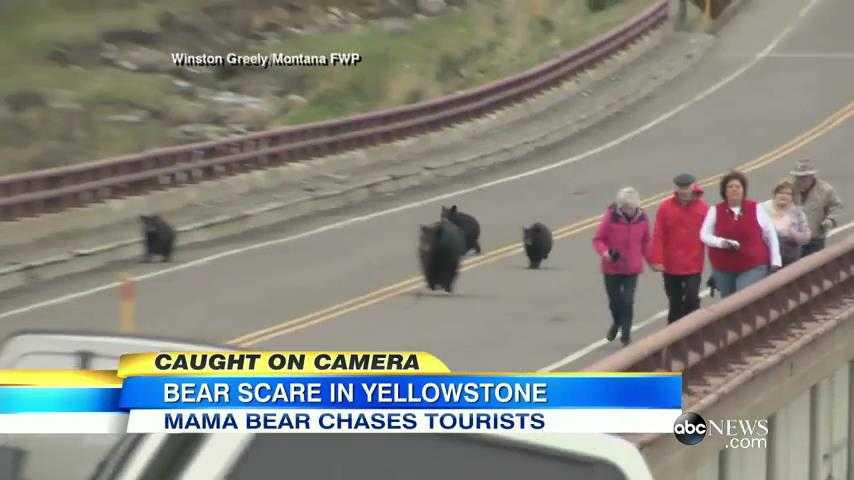(VTC News) - Các du khách có mặt tại Vườn quốc gia Yellowstone, Mỹ, đã có một phen khiếp vía khi đang đi bộ trên cầu thì bất ngờ bốn con gấu đen xuất hiện và đuổi theo họ.