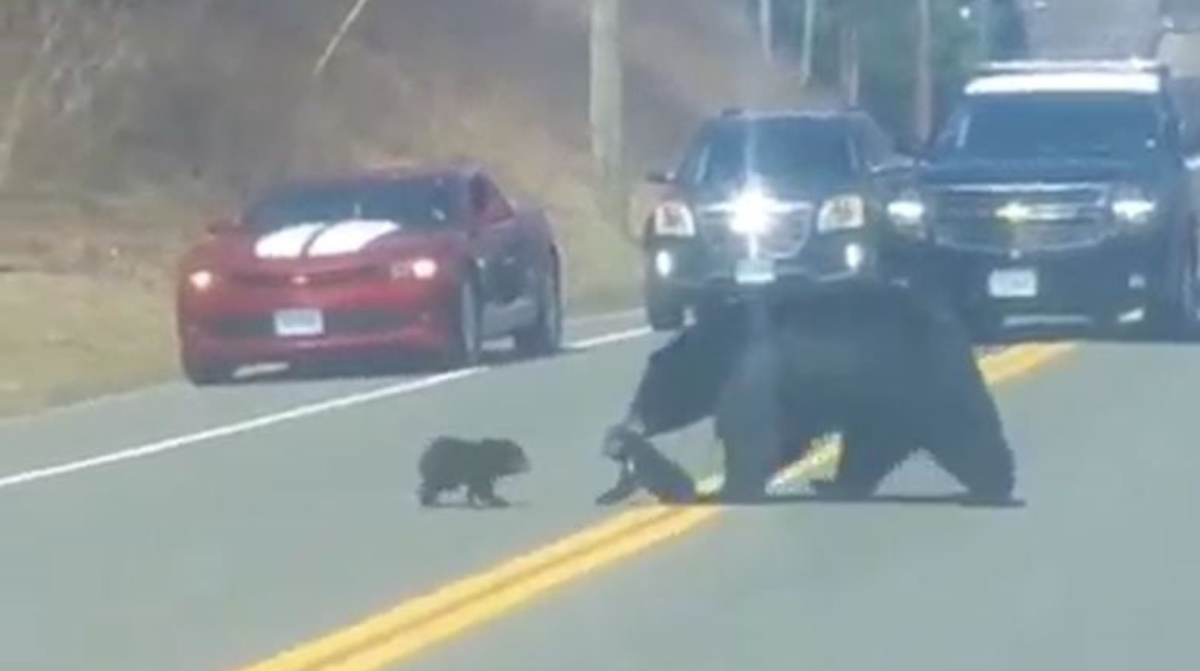 Đoạn video cho thấy gấu mẹ nhiều lần cố gắng đưa đàn con qua đường ở phố Rowley thuộc thị trấn Winchester (bang Connecticut, Mỹ). Mỗi lần gấu mẹ dùng miệng cắp được một gấu con băng qua con đường lớn nhiều xe cộ, những đứa con nghịch ngợm đã kịp bò ngược trở lại. "Bà mẹ" phải rất vất vả mới xoay xở hoàn thành công việc này.