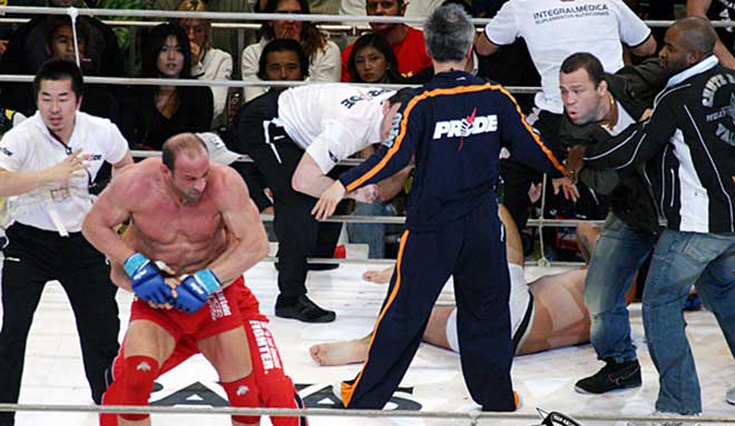 Trận đấu tai tiếng này diễn ra vào năm 2006, giữa 2 võ sĩ Mauricio Rua (Brazil) và Mark Coleman (Mỹ). Trong một nỗ lực hóa giải đòn đánh của đối phương, Rua đã bị gãy tay và ra hiệu xin thua. Tuy nhiên Coleman đã tranh thủ lúc đối phương không còn sức kháng cự để lao vào đánh liên hồi, bất chấp hiệu lệnh của trọng tài.