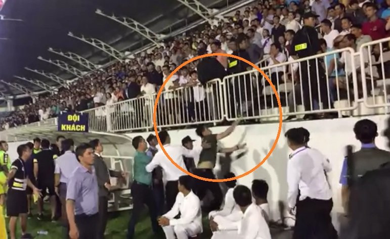 Video: Thành viên CLB Hà Nội và CĐV HAGL ném chai nước vào nhau