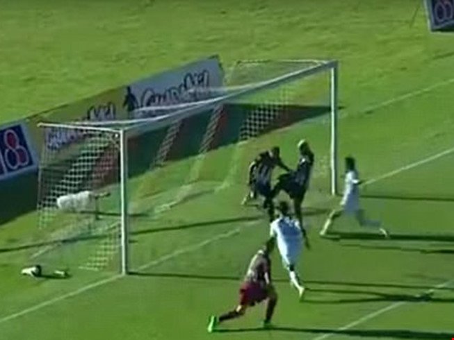 Jaja - nạn nhân của "vụ cướp" đã có một tình huống xử lý rất tốt để vượt qua thủ thành của CLB America Mineiro và đứng trước cơ hội ghi bàn thắng dễ dàng.
