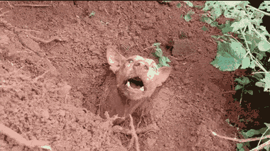 Sau trận lở đất tại Kerala, Ấn Độ, chó mẹ bị chôn vùi đến cổ, 2 chó con vùi lấp trong vũng bùn, tất cả được nhóm cứu hộ giải cứu thành công.