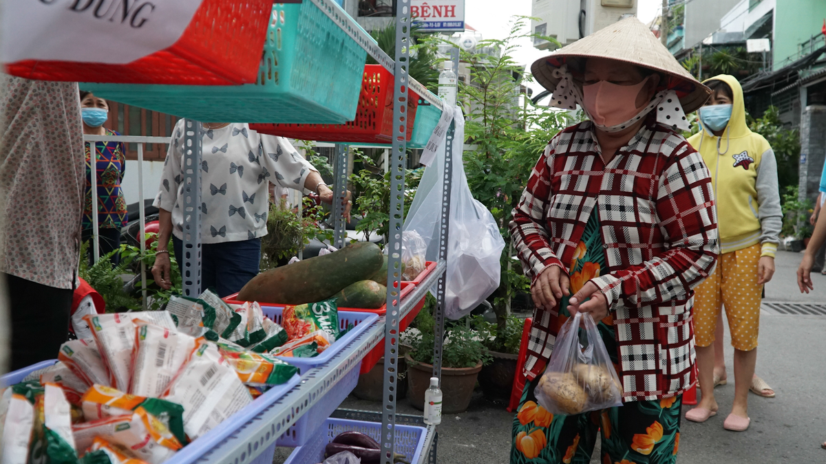 UBND phường 9 (Gò Vấp, TP.HCM) vừa mở gian hàng cung cấp thực phẩm miễn phí đến người dân bị ảnh hưởng dịch COVID-19 trên địa bàn.