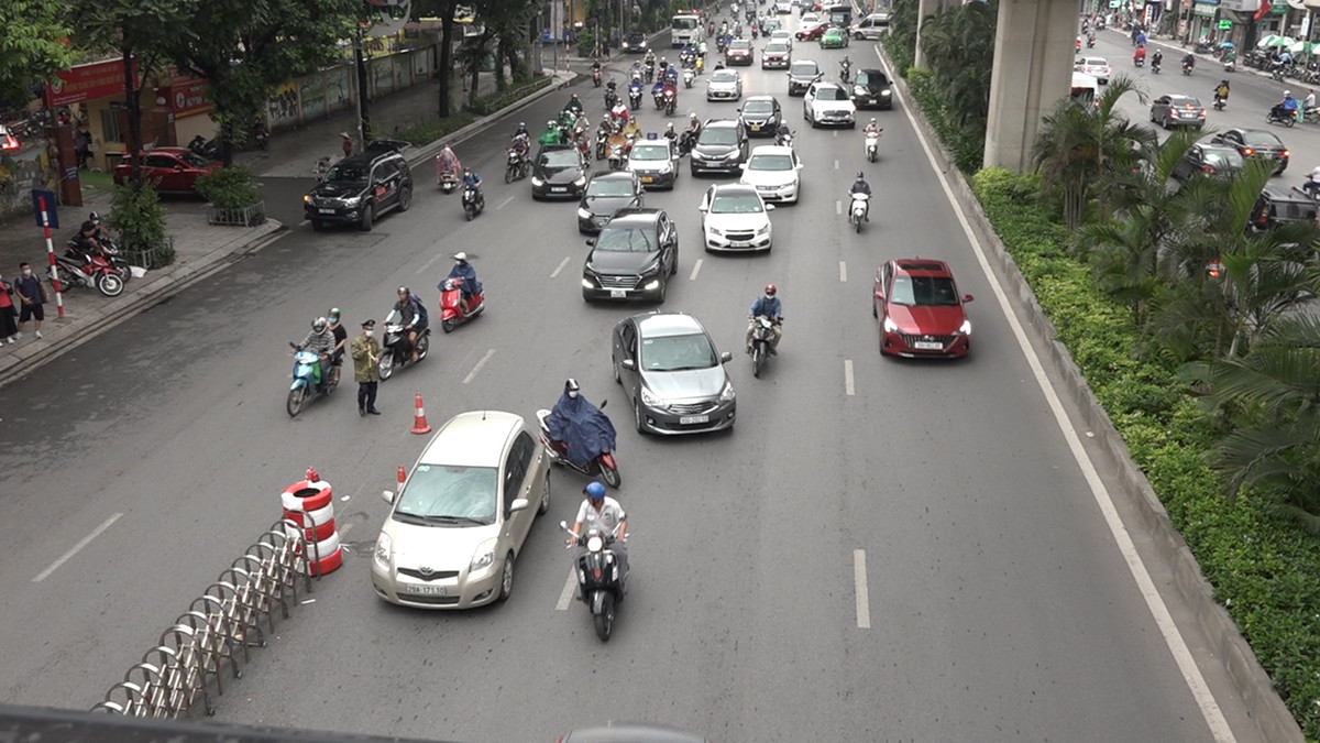 Ngày 6/8, Hà Nội phân làn phương tiện bằng dải phân cách cứng trên đường Nguyễn Trãi nhưng giao thông vẫn hỗn loạn khi xe máy và ô tô đi lẫn vào làn đường của nhau.