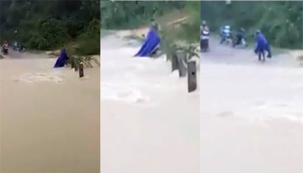 Video: Giáo viên vượt lũ đến trường tại Nghệ An