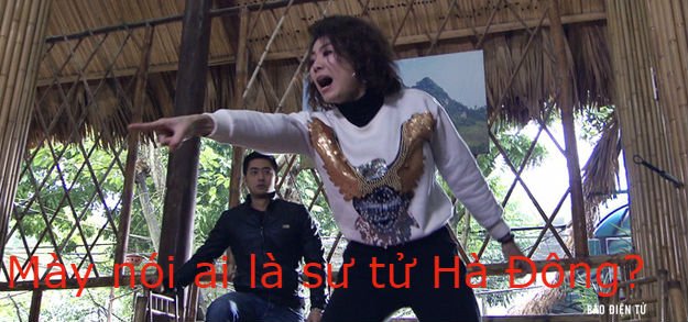 Phan Hương lao tới, quật mạnh Khải xuống đất và chỉ thẳng mặt Khải hét lên "Mày bảo ai là sư tử Hà Đông". Cô đấm Khải túi bụi khiến anh ta không kịp thốt lên lời nào, còn Bảo "Ngậu" vội vã nhảy lên ghế.