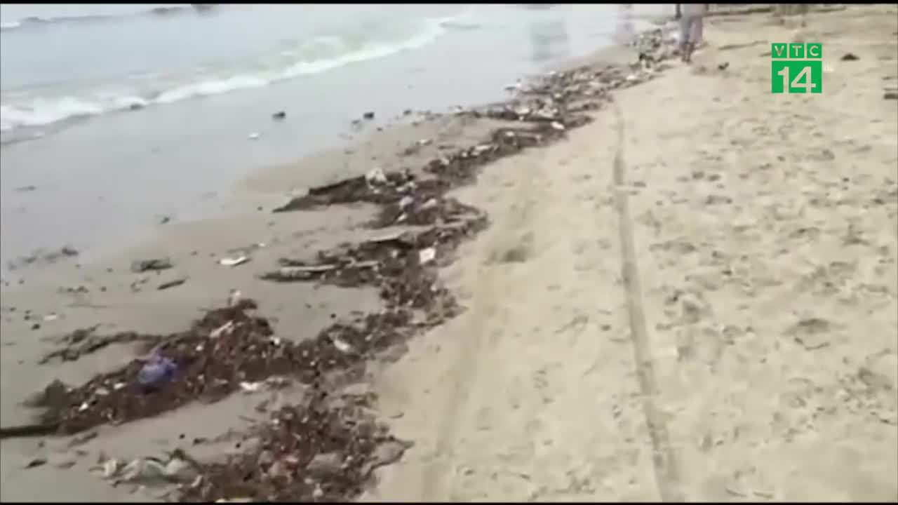 Nguyên nhân do mưa lớn nên rác theo con sóng trôi dạt vào bờ, tình trạng này đang gây ảnh hưởng đến du khách ngay trong kỳ nghỉ lễ.