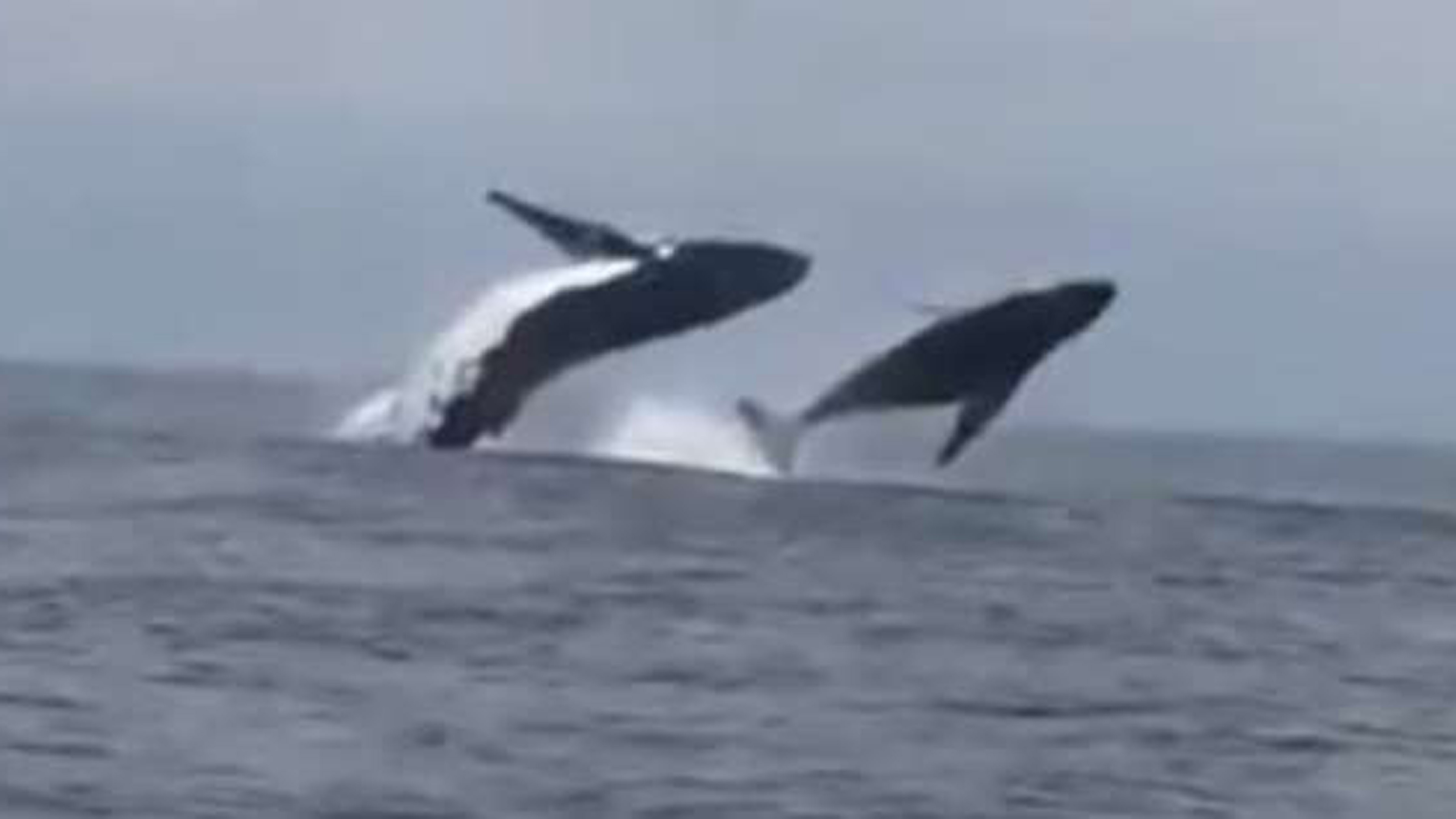 Video: Hai mẹ con cá voi lưng gù 'nhảy đôi' cực ngoạn mục