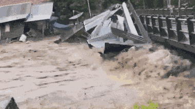 Video: Hai ngôi nhà vỡ nát khi bị nước lũ cuốn vào gầm cầu