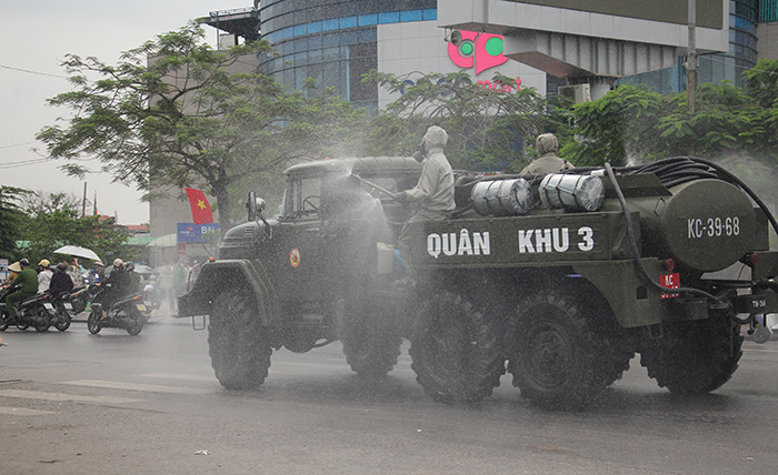 Sáng 28/3, Sở Y tế phối hợp cùng lực lượng Quân khu 3 phun hóa chất khử trùng trên một số tuyến đường, khu vực nhằm phòng chống dịch Covid-19.