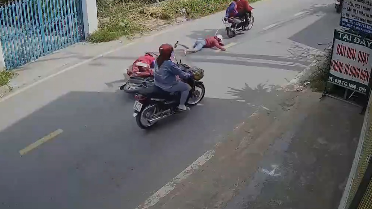Người phụ nữ đang lái xe bị 2 tên cướp giật túi xách, kéo lê nhiều mét trên đường tại huyện Đức Hòa, tỉnh Long An.
