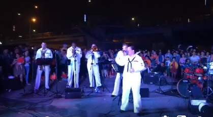 Nữ ca sỹ chính của Hạm đội 7 tối 5/3 đã khuấy động không khí ở khu vực đầu cầu Rồng khi trình diễn liên tiếp các ca khúc bằng cả tiếng Anh và tiếng Việt. Đặc biệt phải kể tới bài hát nổi tiếng của cố nhạc sỹ Trịnh Công Sơn "Nối vòng tay lớn".