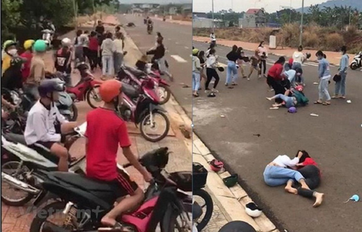 Video: Hàng chục thiếu nữ lao vào đánh nhau giữa đường ở Bình Phước