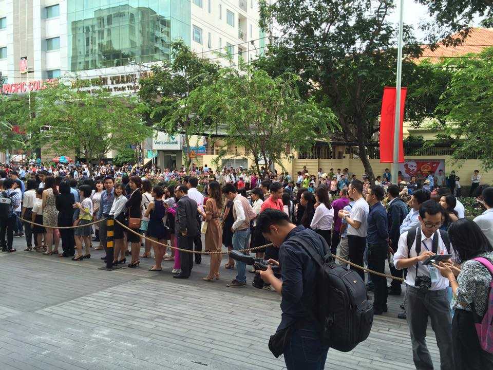 Hàng nghìn người xếp hàng từ sáng sớm ở GEM Center TP HCM đợi sự xuất hiện của Tổng thống Obama.