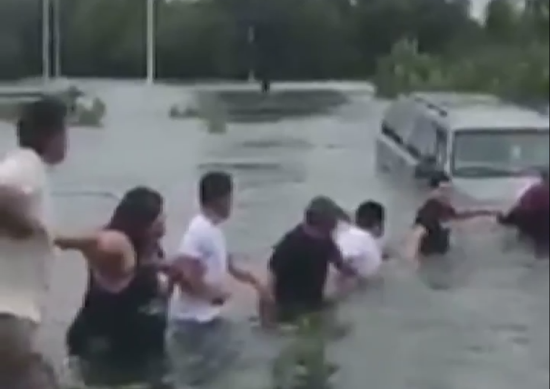 Bị nước lũ cuốn trôi, chiếc ô tô SUV của một người đàn ông lớn tuổi đang sắp chìm khi không có ai bên cạnh. Ngay lập tức những người hoàn toàn xa lạ đã không chần chừ nhảy vào dòng nước để giúp đỡ người gặp nạn.