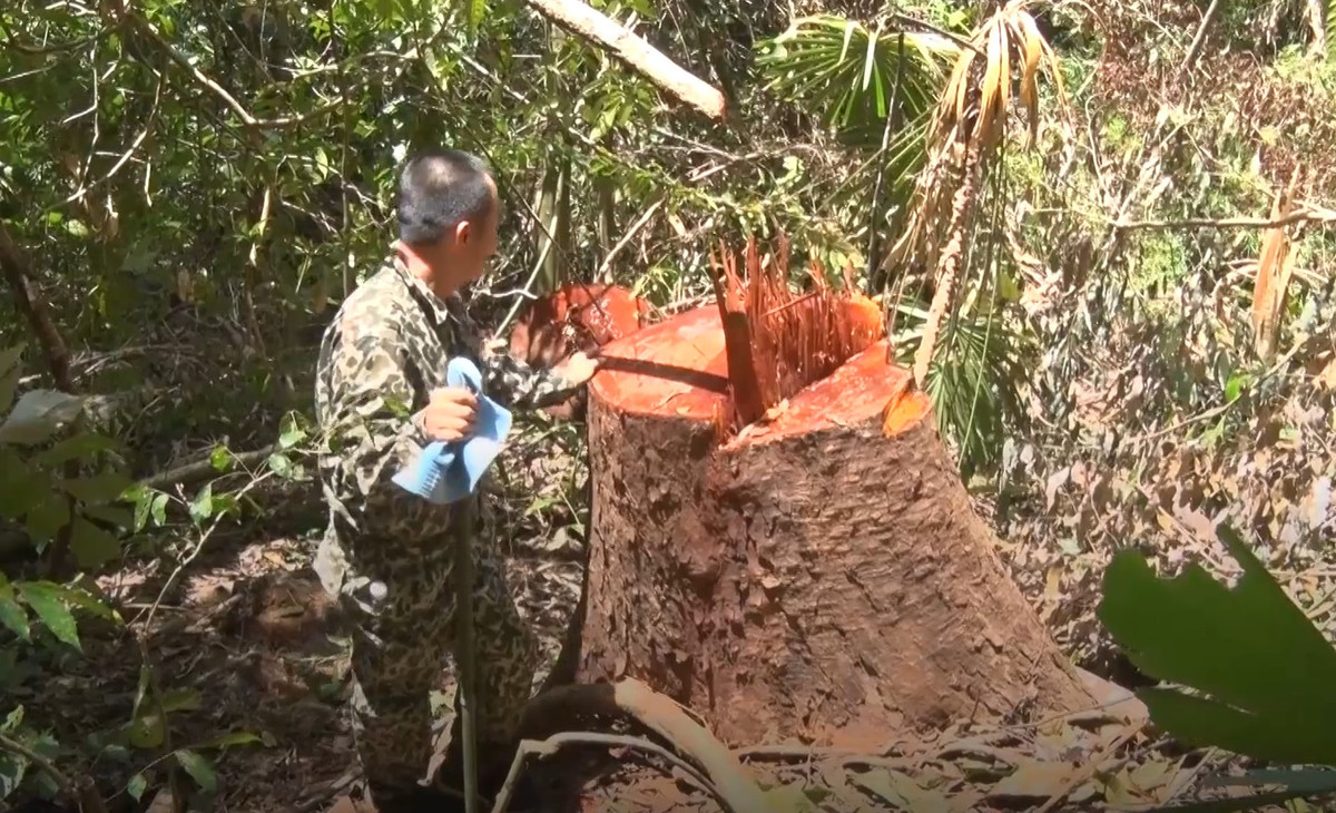 Hàng trăm cây gỗ lớn trong khu rừng già ở xã Mô Rai (Sa Thầy, Kon Tum) bị lâm tặc đốn hạ chỉ còn trơ gốc.