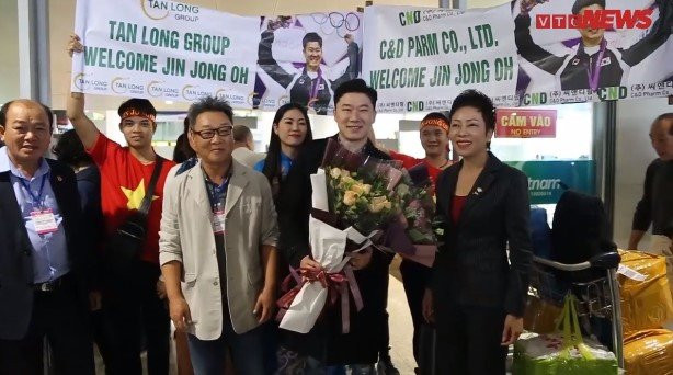 Chiều 30/11, xạ thủ từng 4 lần vô địch Olympic, Jin Jong Oh đã đến sân bay Nội Bài, Hà Nội, được đông đảo VĐV và người hâm mộ môn bắn súng chào đón.