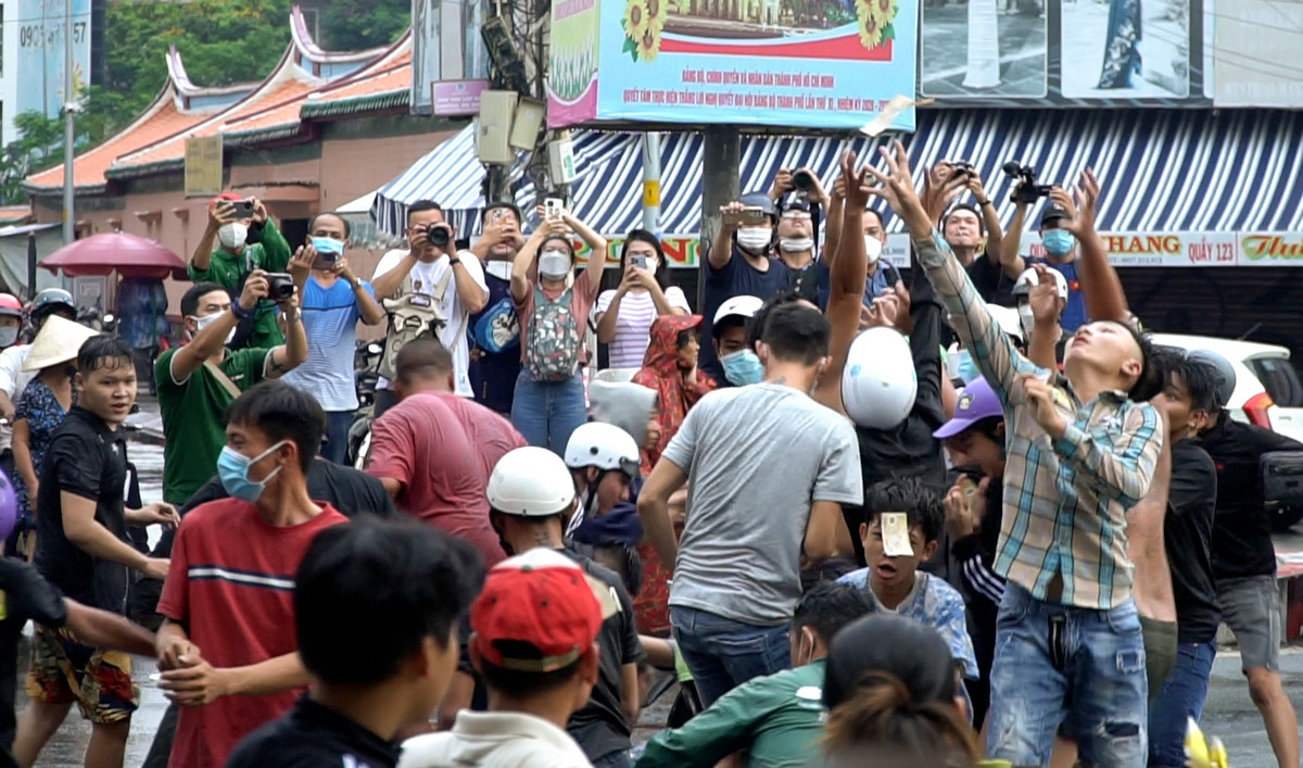 Dù trời mưa nhưng hàng trăm người vẫn đổ về khu vực quận 5, TP.HCM tranh nhau "giật cô hồn".