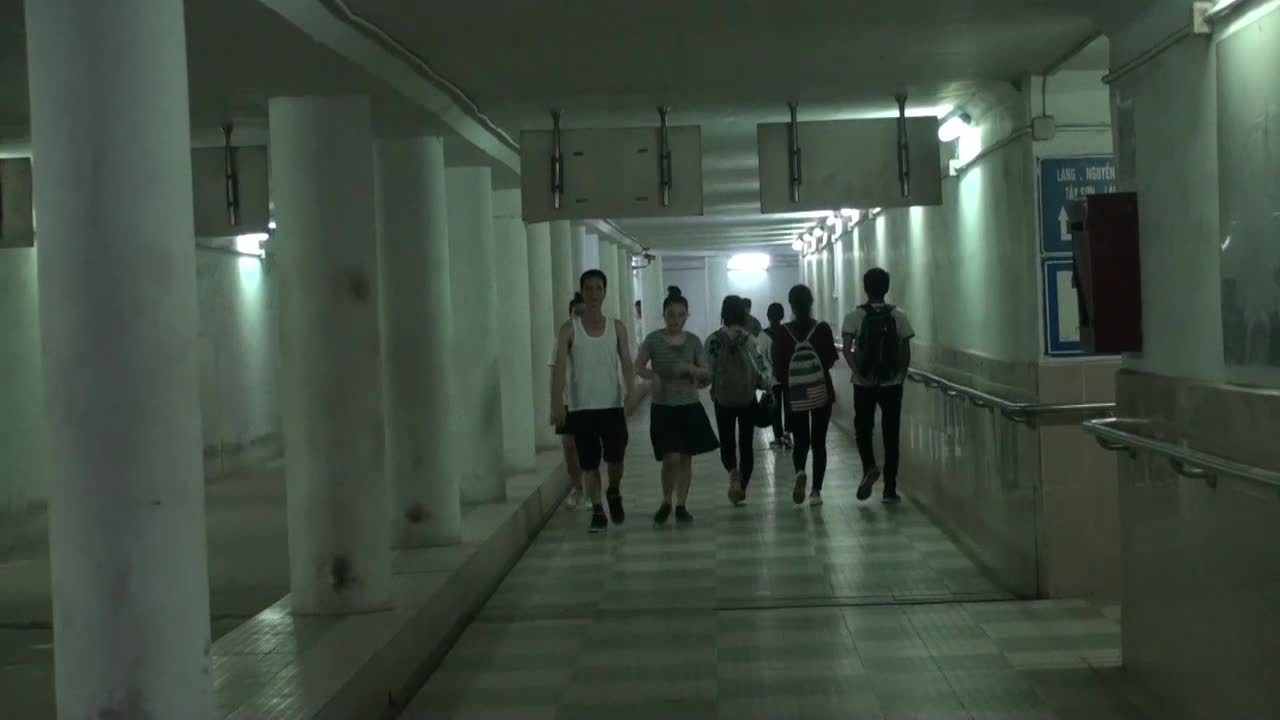 dâm xuống hầm đi bộ thể dục tránh nắng