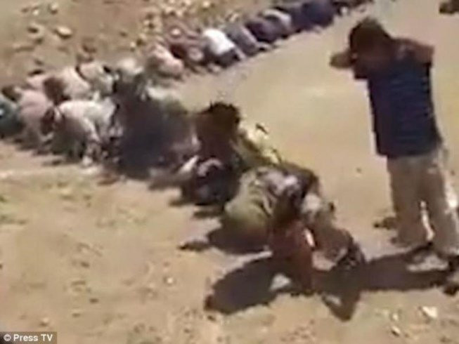 Theo Daily Mail, đoạn video quay tại một sa mạc được cho là thuộc thị trấn al-Ayadieh, ghi lại cảnh các tay súng IS bất lực quỳ gối xin hàng.