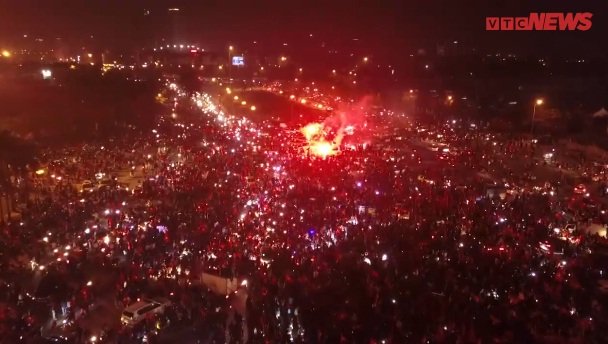 Video: Hàng vạn người ăn mừng ấn tượng ngay trước sân Mỹ Đình nhìn từ flycam
