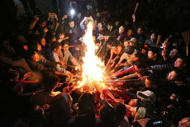 Video: Háo hức xin lửa sân đình, 'lấy đỏ' đầu năm