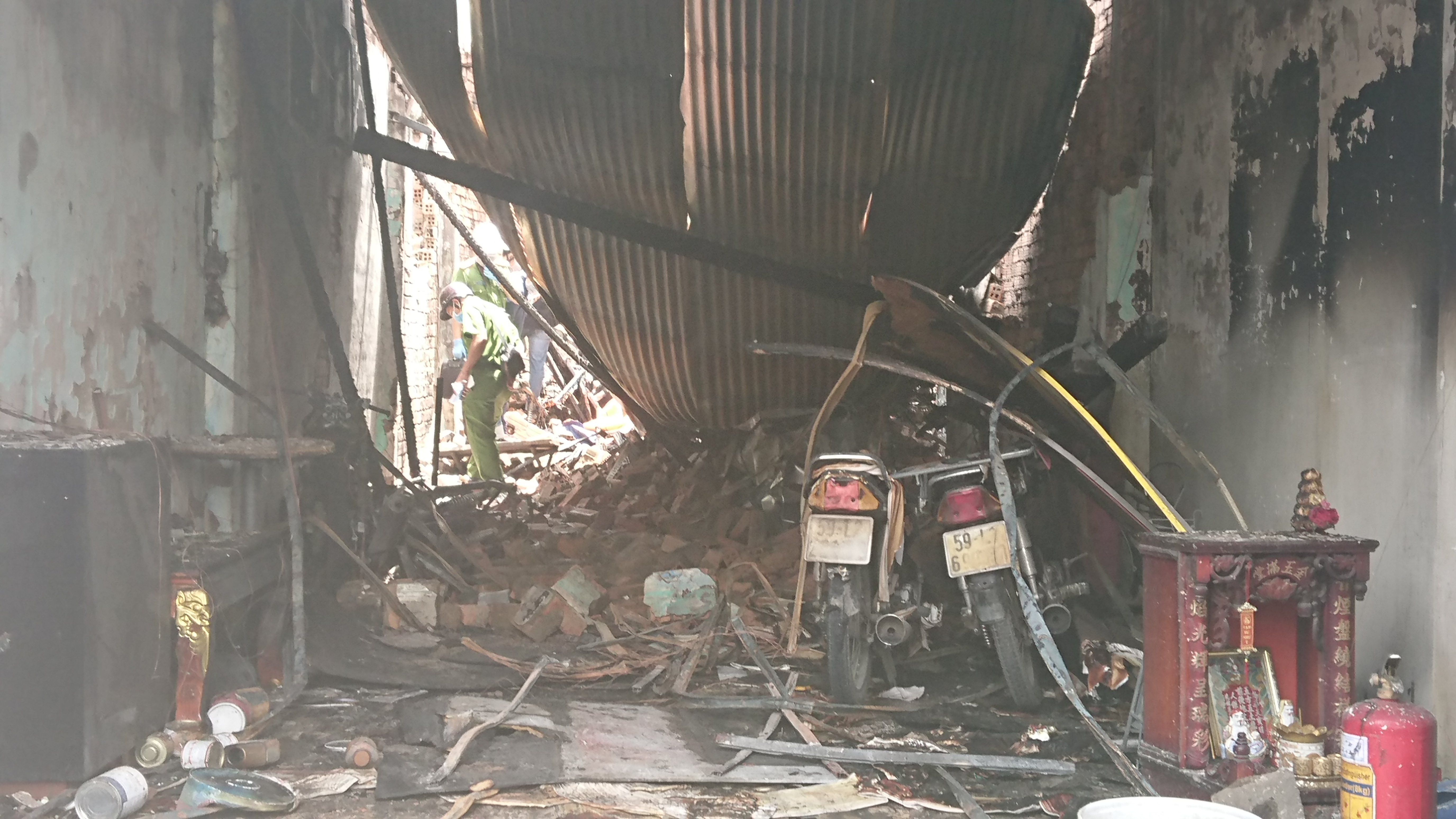 Phòng pháp chế điều tra xử lý về cháy, nổ thuộc Cảnh sát PCCC TP.HCM vẫn đang phong toả để tiến hành khám nghiệm hiện trường, điều tra nguyên nhân vụ cháy.