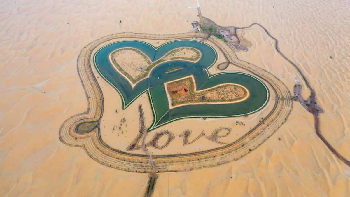 Video: Hồ nước hình trái tim trên sa mạc ở Dubai
