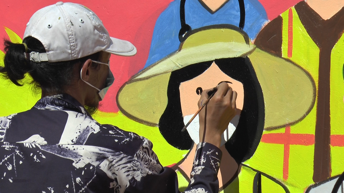 Video: Họa sĩ vẽ tranh tường cổ động phòng chống dịch COVID-19