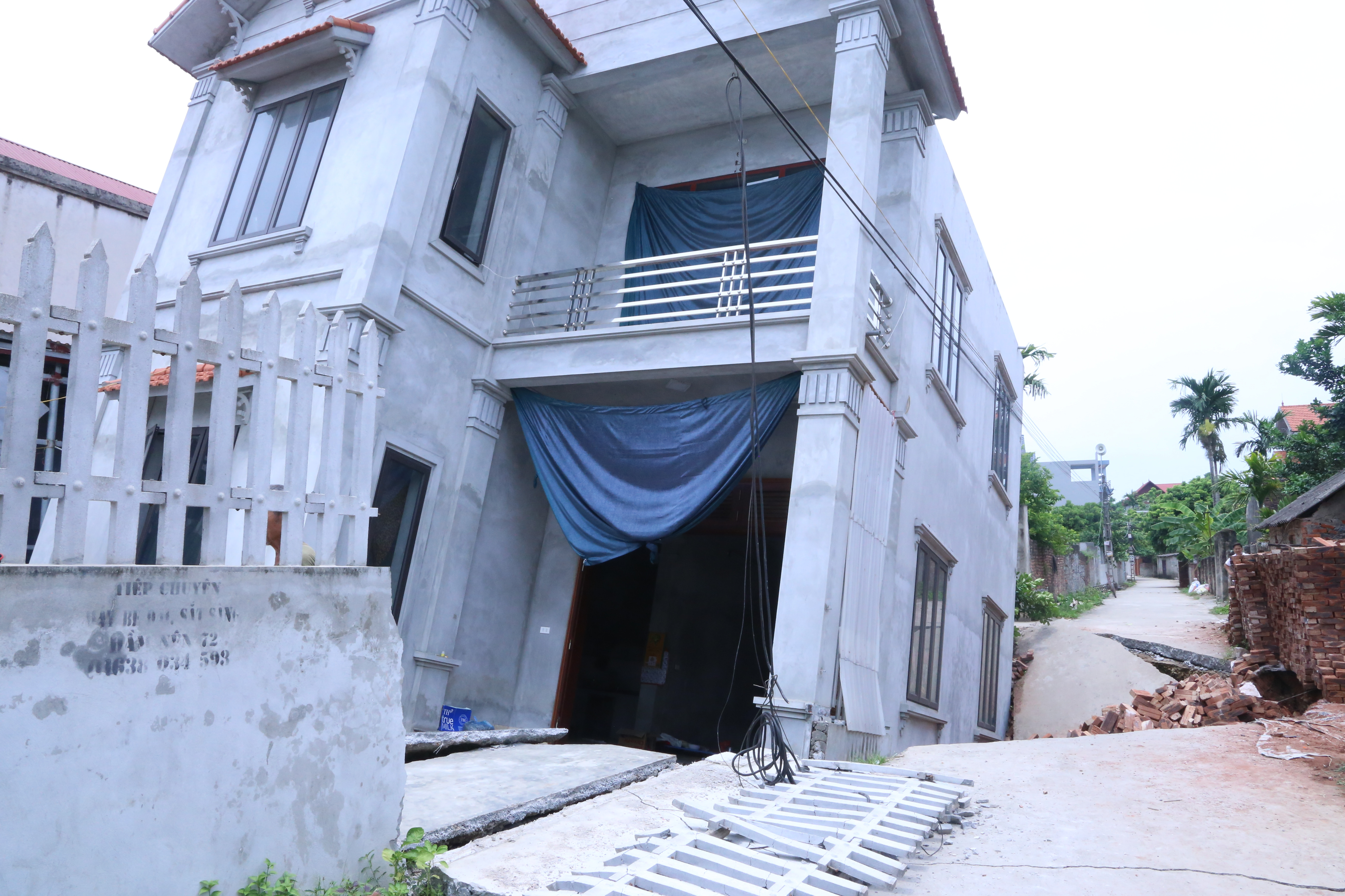 “Hố tử thần” xuất hiện tại xã An Tiến (huyện Mỹ Đức, Hà Nội) khiến một ngôi nhà bị sụt lún, nứt toác sâu gần 4m.