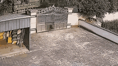Một con lợn rừng tại tỉnh Chiết Giang, Trung Quốc sợ hãi trước tiếng còi của xe tải đã tông sập cổng sắt và nhảy qua tường rào, chui vào bụi cây lẩn trốn.