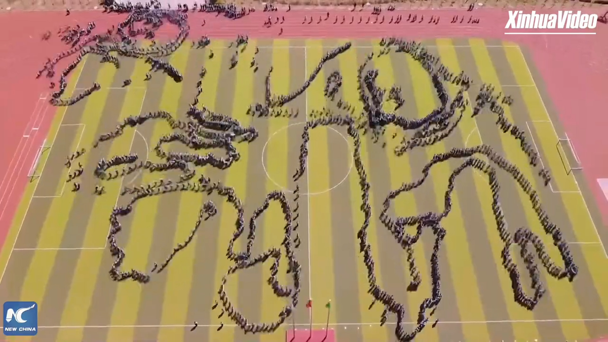Video: Hơn 3000 học sinh xếp đội hình, chơi rắn săn mồi ở Trung Quốc