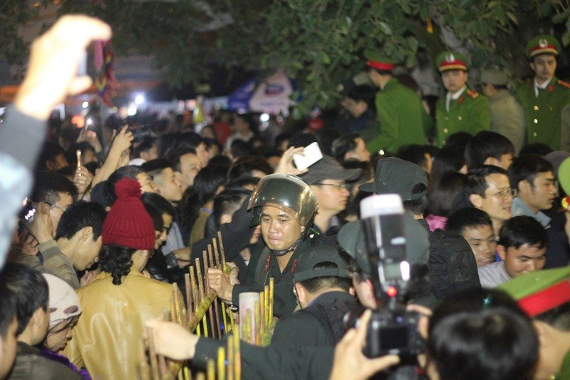 Ai cũng cố vào thật nhanh bên trong đền Trần (Nam Định) nên xảy ra cảnh hỗn loạn.