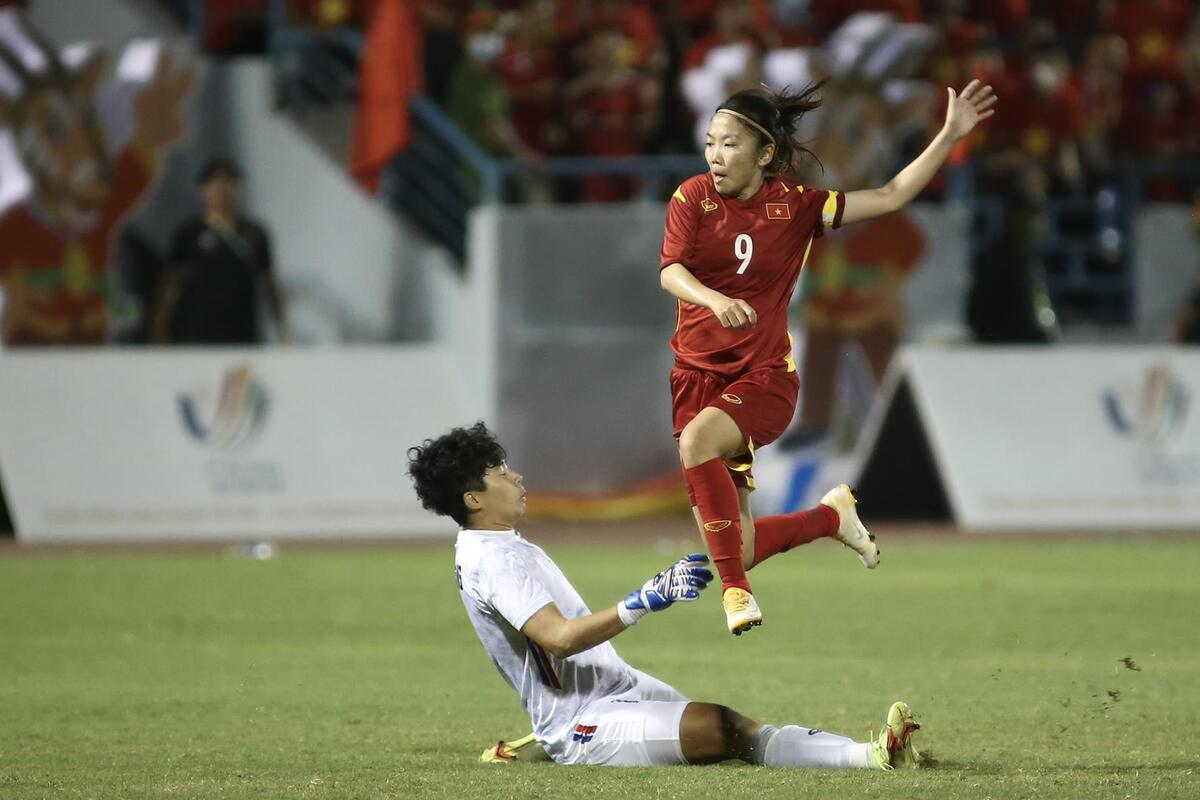Huỳnh Như mở tỉ số cho đội tuyển nữ Việt Nam trong trận chung kết bóng đá nữ SEA Games 31 gặp Thái Lan.