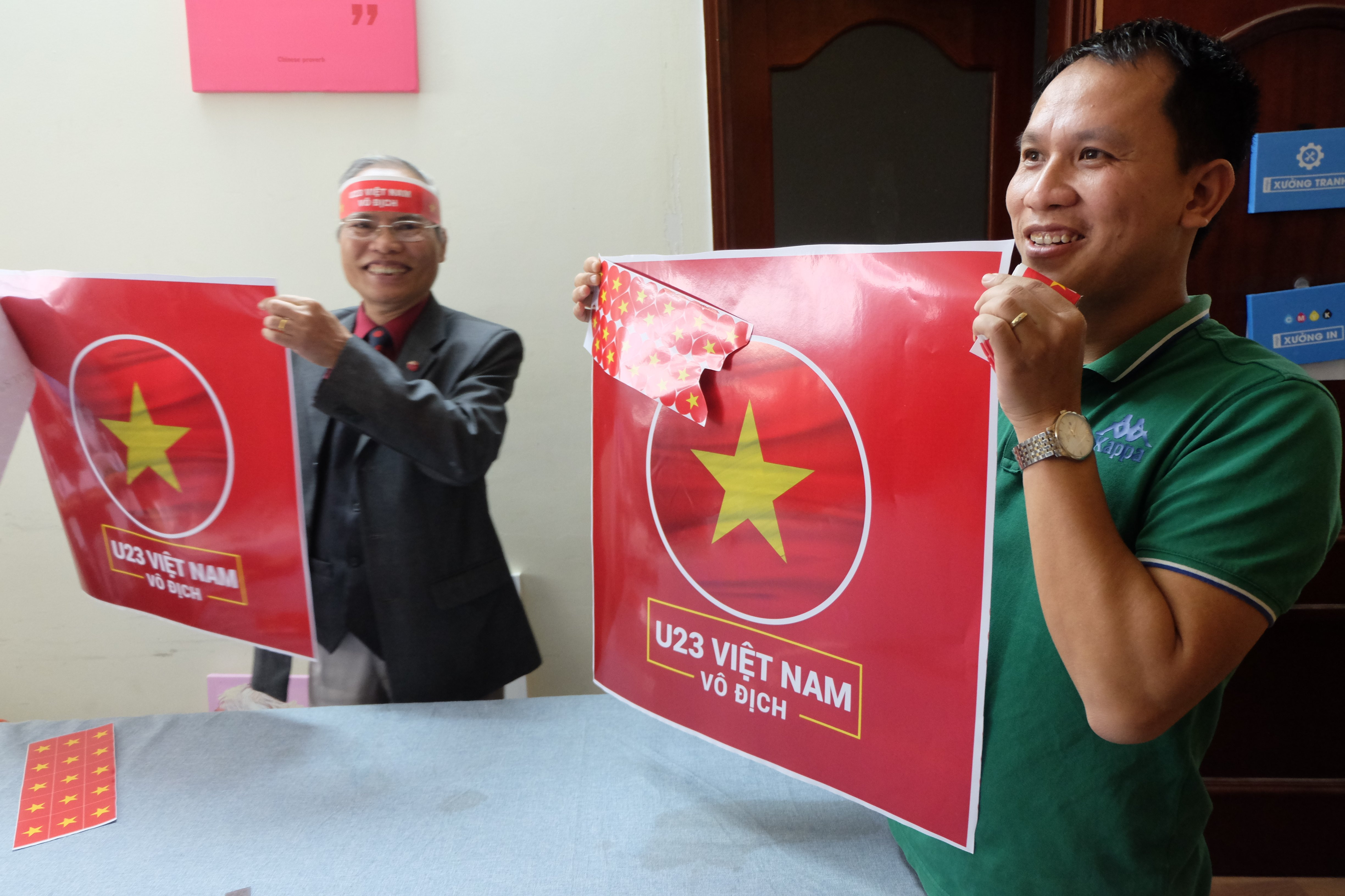 Với mong muốn tiếp thêm sức mạnh cho ĐT U23 Việt Nam trước thềm trận chung kết giải U23 châu Á, một xưởng chuyên in tranh tại Hà Nội đã tung 'chiến dịch' phát tặng decal miễn phí cho mọi người để dán lên xe.