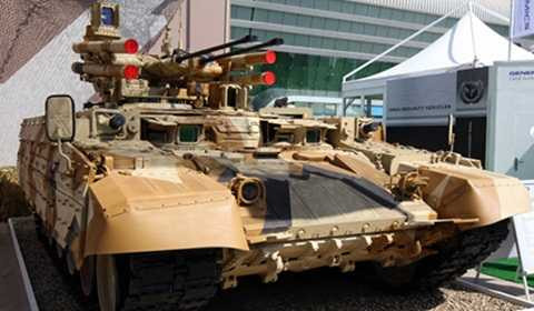 Ngay vào ngày đầu tiên của cuộc triển lãm IDEX-2013, hai phiên bản mới nhất của thiết bị quân sự sản xuất tại Nga đã vào Top-10. Khách tham quan có thể thấy chiếc xe chiếu đấu yểm trợ tăng "Terminator" tại sân trưng bày của Nga.