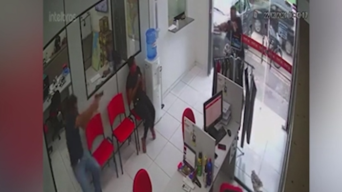 Hình ảnh tên cướp đấu súng với một khách hàng trong cửa tiệm ở Brazil đầy gay cấn.
