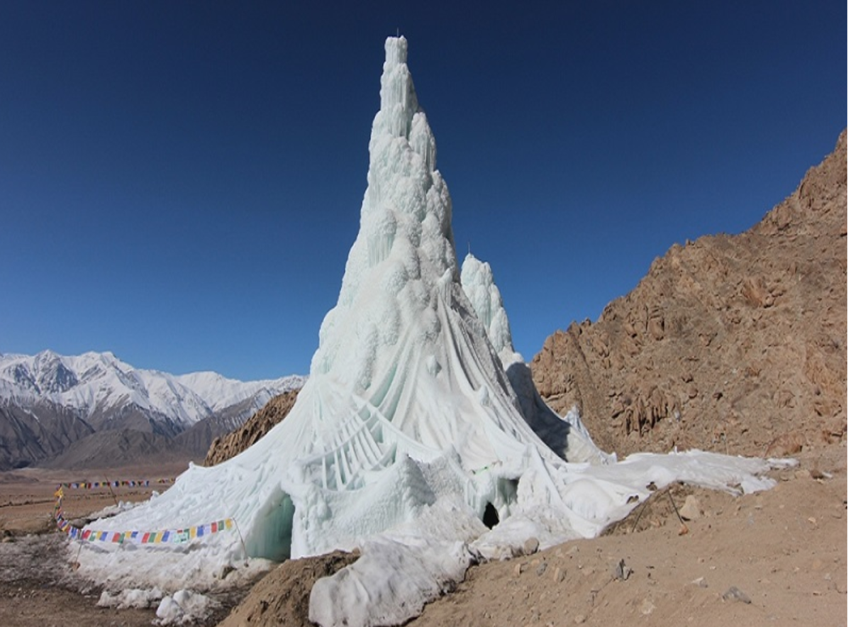 Tháp băng của kỹ sư Sonam Wangchuk xuất hiện ở Ladakh, miền Bắc Ấn Độ, giải quyết vấn đề nước sinh hoạt của người dân, thu hút du khách ghé thăm.
