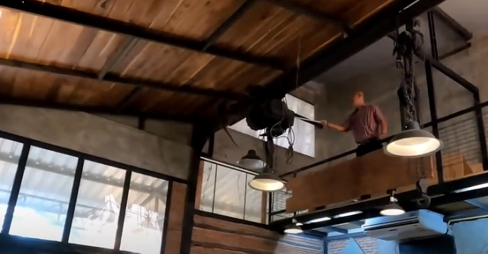 Khỉ đột nhập vào nhà hàng, leo trèo lên trần nhà tại tỉnh Trat, Thái Lan.