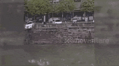 Video: Khoảng khắc ô tô tông sập lan can lao xuống kênh ở Trung Quốc