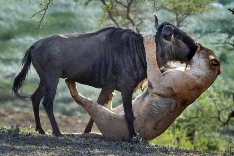 Video: Khoảnh khắc linh dương đầu bò 'tử chiến' với sư tử để cứu con