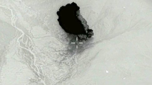 Đoạn video đen trắng dài 30 giây được một máy bay trinh sát bay ở phía trên thung lũng ghi lại. Chỉ vài giây sau khi lao xuống, quả bom phát nổ và tạo ra một đám khói lớn hình nấm khổng lồ.