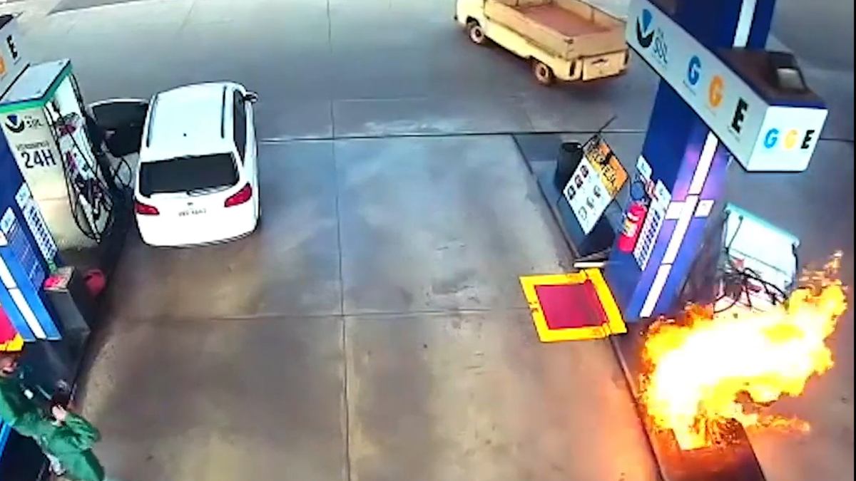 Sau khi bơm nhiên liệu, tài xế xe tải quên rút vòi, kéo đổ cây nhiên liệu khiến lửa bùng lên tại một cây xăng ở Brazil.